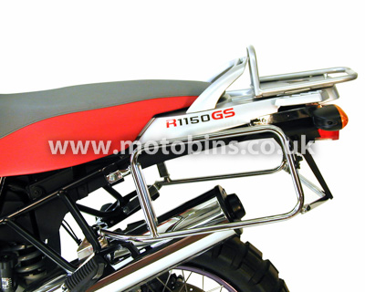 We stock these frames made by Hepco & Becker to mount their luggage to the range of BMW`s. If the item is described as LUGGAGE FRAMES a rear top box mounting rack is included with the pannier side frames to which a Hepco top box can be fitted. If the item is described as REAR RACK STAND ALONE this means that this is only a rear top box mounting rack that can take a Hepco Top Box. If the item is described as PANNIER FRAMES then these are for panniers only - this means that an existing rear rack can be left in position. All frames use a double skin construction where there is a tube within a tube for added strength. Often there is a choice of chrome plated, black or silver finish.